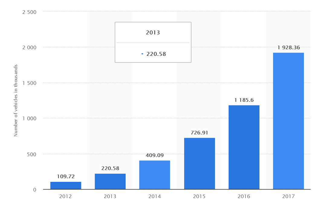 Worldwide number of battery electric vehicles in use from 2012 to 2017